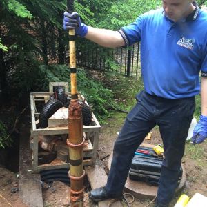 Many Bolton CT homes have a well system. When a homeowner calls us in a panic because there's no water, a dead well pump is usually to blame. There had been a storm the day before and a possible lightning strike. A well pump that's been struck by lightning may not be affected until several days later. The Bolton homeowner has a submersible well system. That means that the well pump is located several hundred feet below ground. There are several troubleshooting steps a plumber technician will take before pulling the pump. In this case, the pump had to be pulled. We have special equipment to both dig out the well AND pull the pump safely. It was determined that the lightning had damaged the pump and it needed to be replaced. You can also see the effects of harsh water quality on plumbing equipment. This pump has a ton of iron on it. Our plumbing team was able to install a new Goulds well pump, along with replacing the well pipe and wire. Our B olton CT customer called in the problem on a Saturday night, and our team was out first thing Sunday morning. By Sunday afternoon, the installations were complete and everything was cleaned up. In the days that followed, our office staff helped the customer provide information to his insurance company for a claim. He got all this done with just one call to Rapid Service LLC!